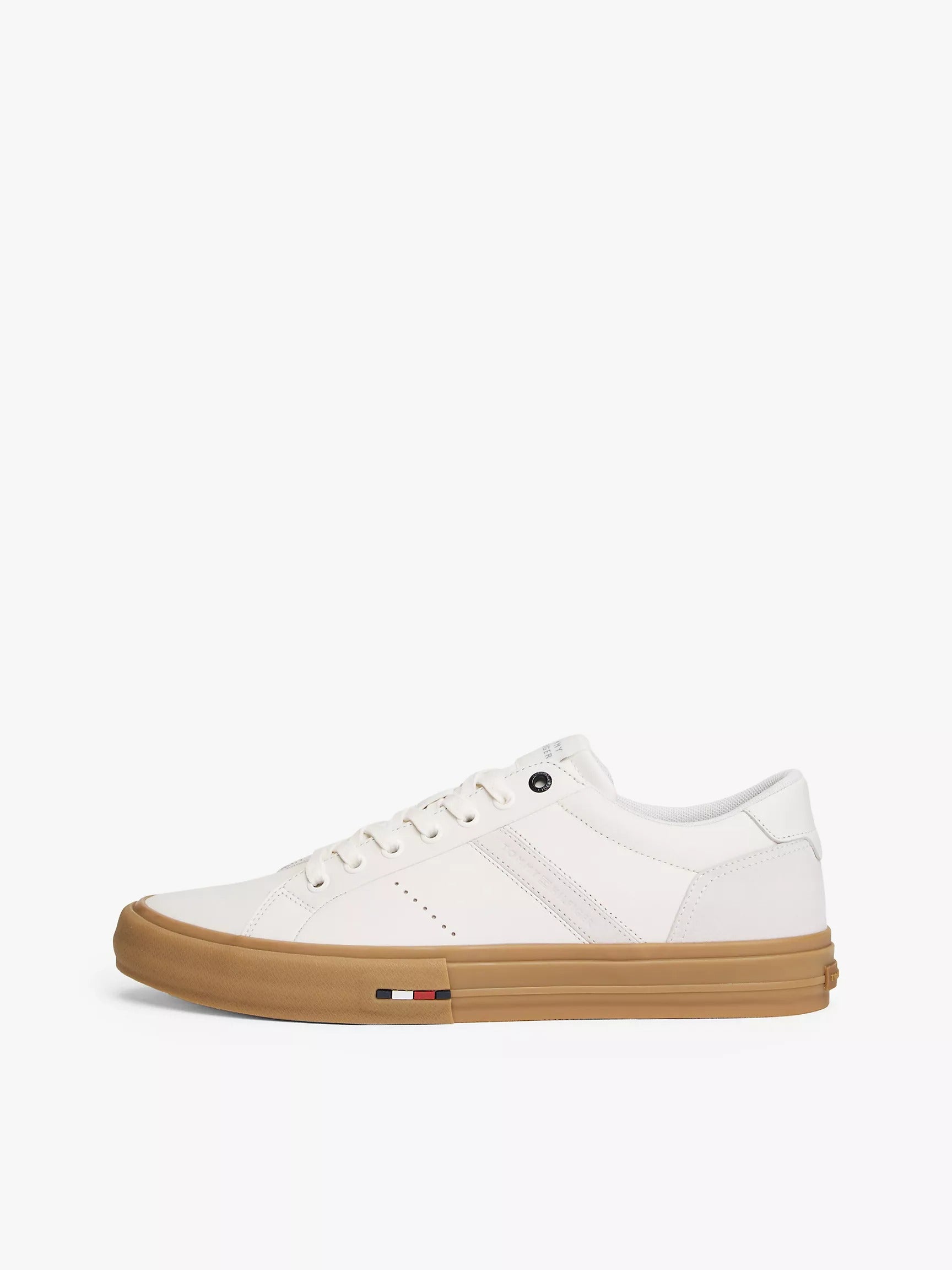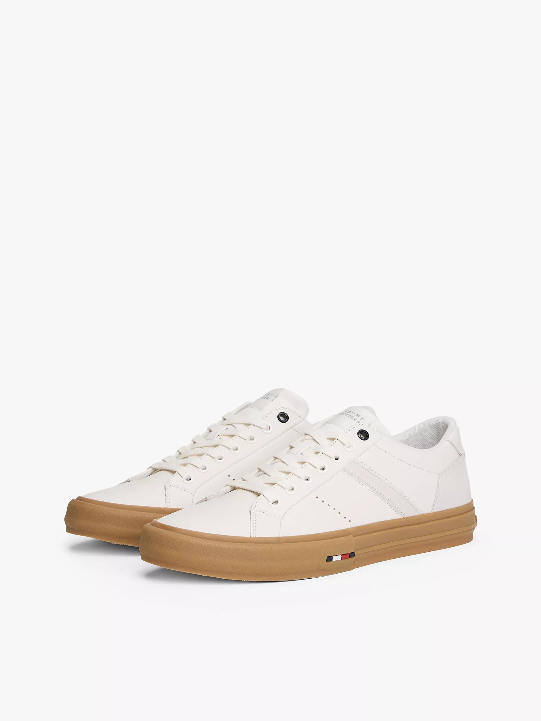 Zapatillas Tommy Hilfiger para hombre. Para los minimalistas, estas clásicas zapatillas bajas de cuero están diseñadas con empeine con cordones y un discreto detalle de la marca. Acabamos con una suela vulcanizada termotratada para mayor flexibilidad y durabilidad.
