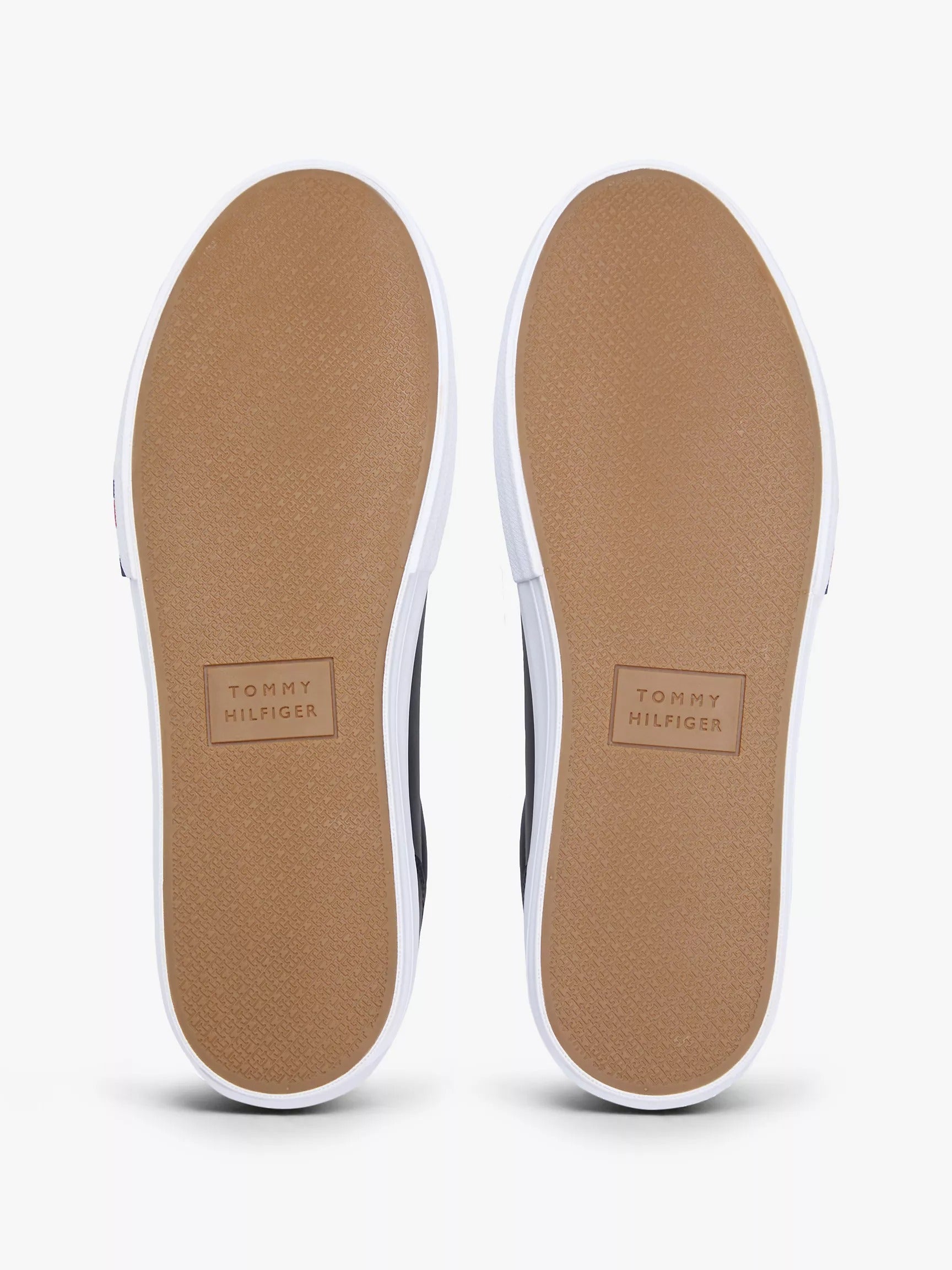 Zapatillas Tommy Hilfiger para hombre. Discretas y versátiles, nuestras zapatillas premium de piel napa combinan a la perfección con casi cualquier prenda. Esta versión cuenta con una suela vulcanizada termotratada para mayor durabilidad y flexibilidad.