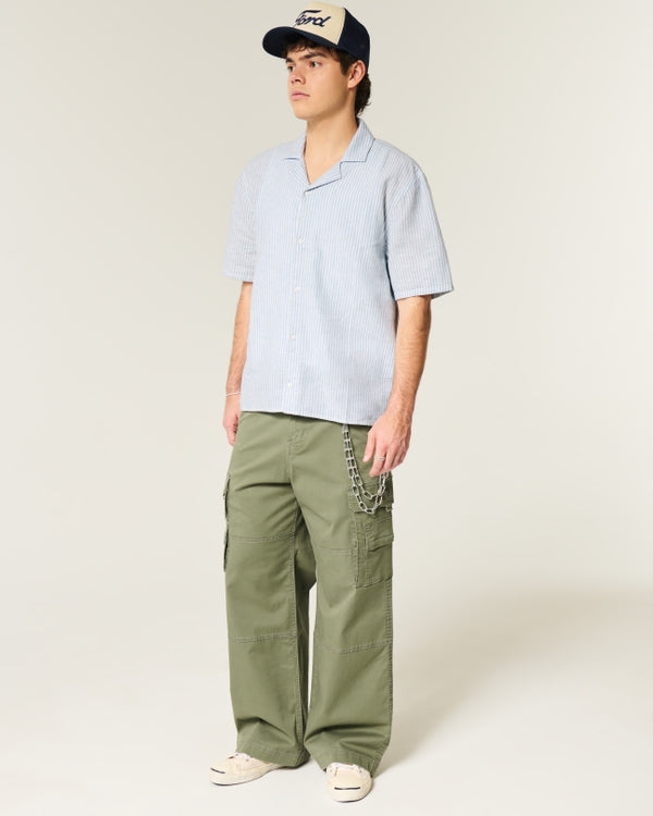 Camisa manga corta de corte cuadrado mezcla de lino