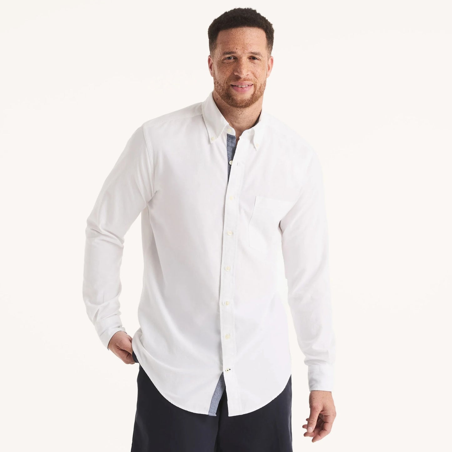 Esta camisa de algodón elástico con botones tiene un corte clásico, ideal para cualquier ocasión.