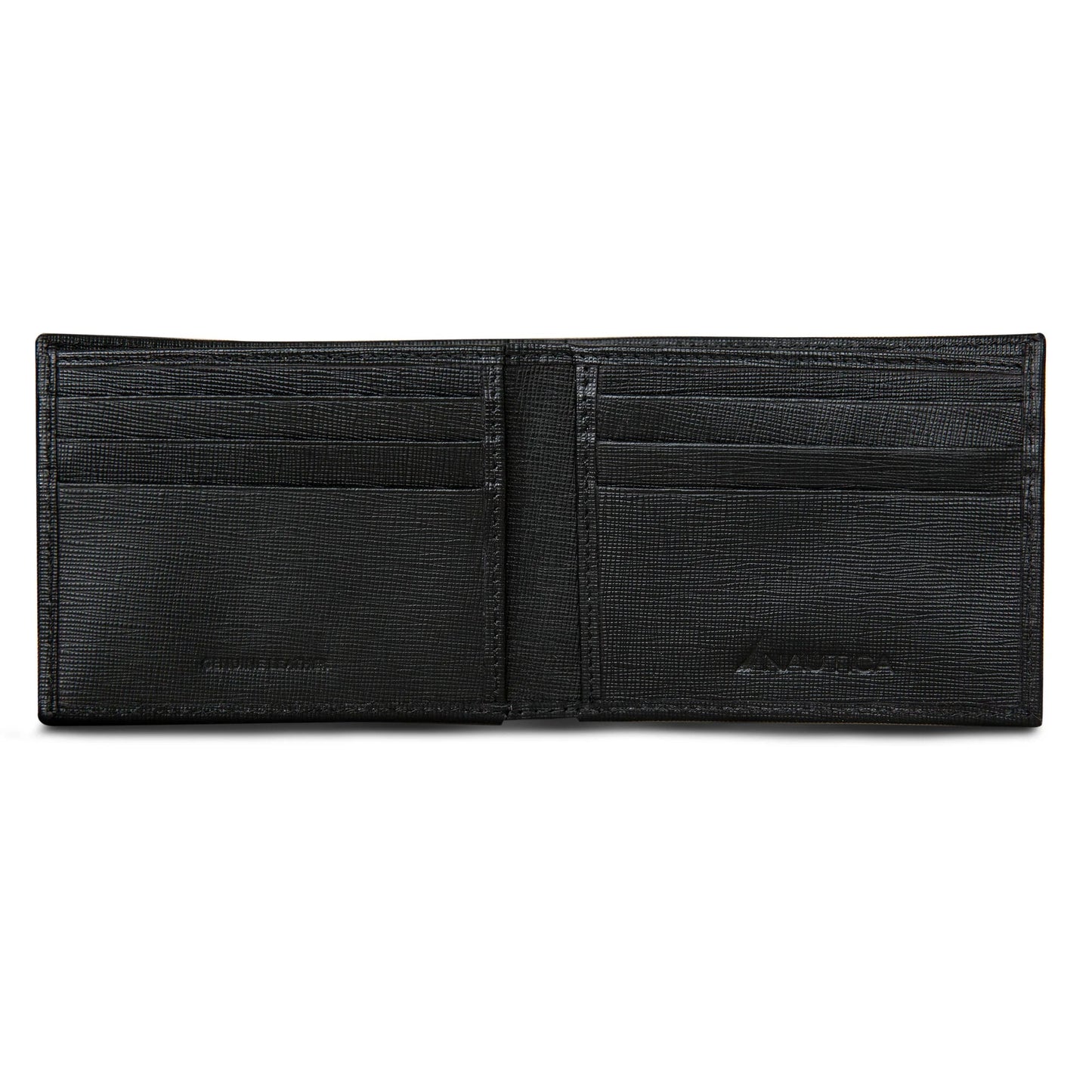 - 6 ranuras para tarjetas. Pliegue del billete. Placa con logo grabado.