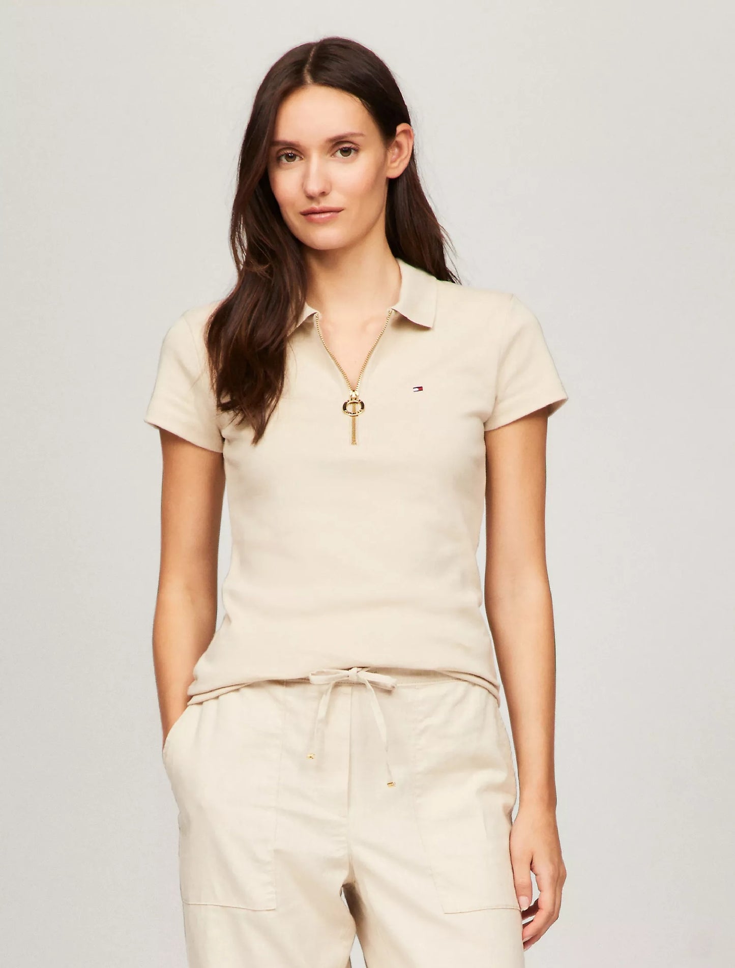 Polo de mujer Tommy Hilfiger. Diseñado con un corte ajustado confeccionado en algodón de primera calidad, este polo está rematado con una tapeta elevada con cremallera dorada.
