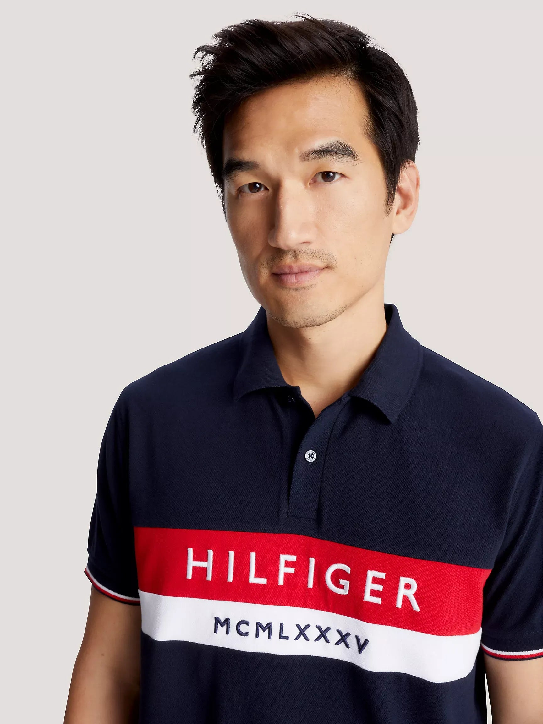 Polo de hombre Tommy Hilfiger. Lo que mejor sabemos hacer, nuestro polo de algodón piqué, con un corte sencillo y nuestro logotipo de rayas Hilfiger bordado.