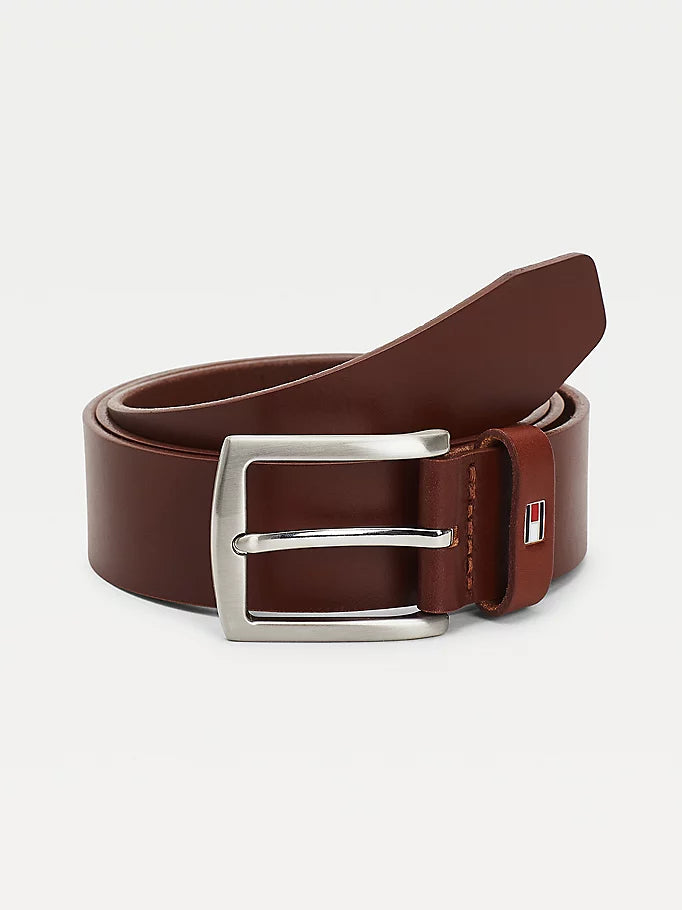 Cinturón de hombre Tommy Hilfiger. Manténgase perfectamente unido: nuestro cinturón de cuero con hebilla de acero inoxidable y nuestro icónico logotipo de bandera en el bucle.
