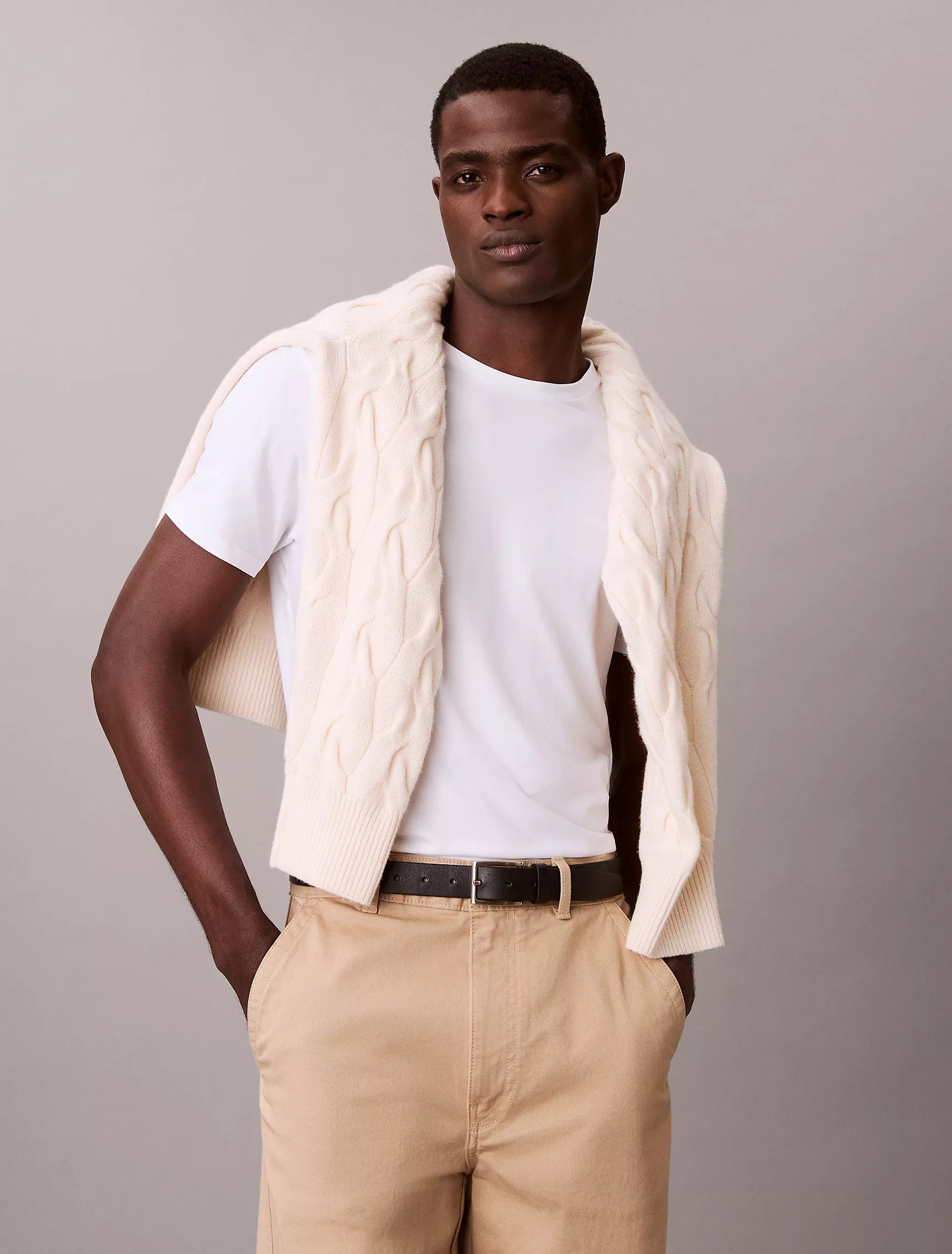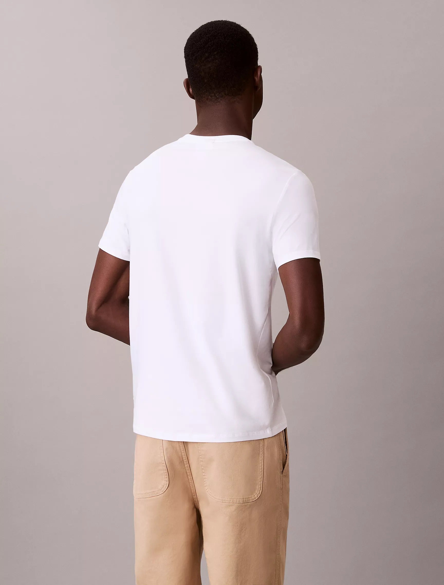 Esta camiseta de Calvin Klein, sumamente suave y con un tacto fresco, está confeccionada en algodón elástico con acabado líquido para una comodidad superior. Presenta un corte entallado y cuello redondo.