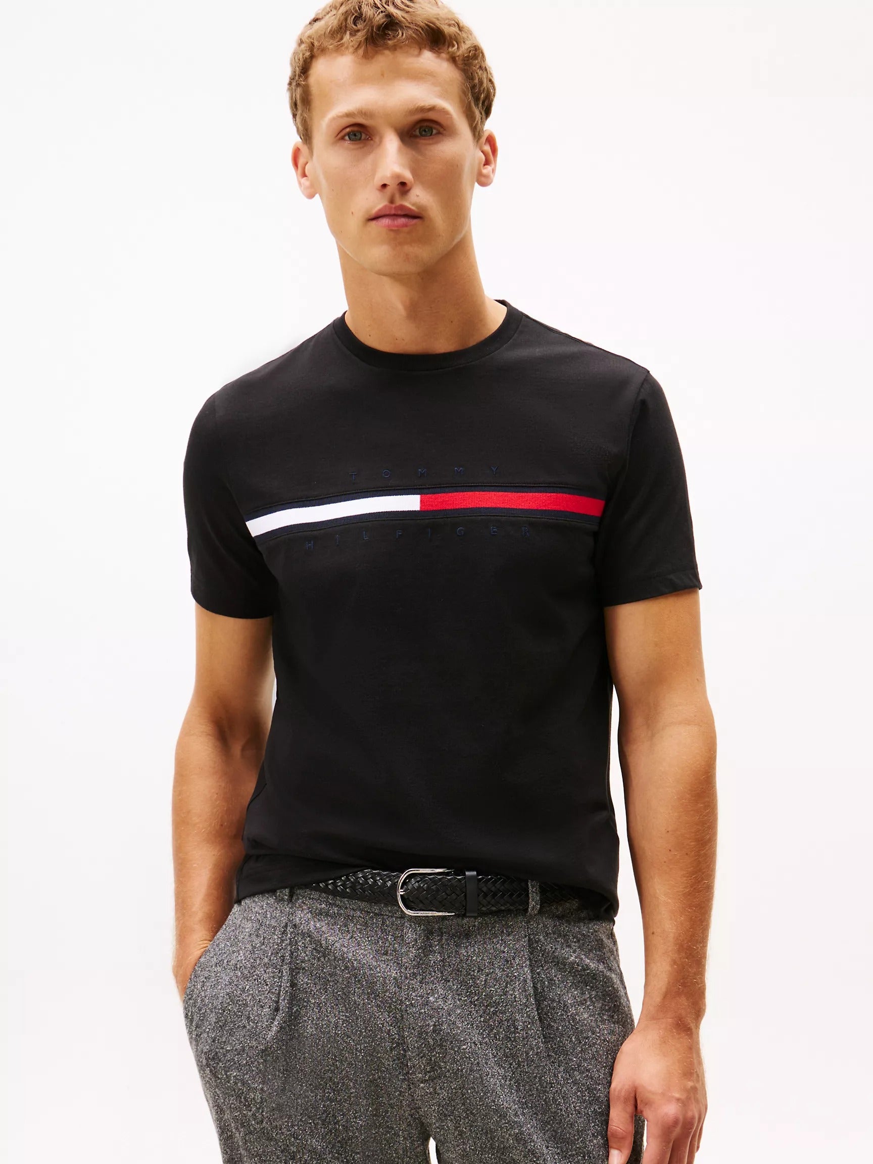 Camiseta Tommy Hilfiger para hombre. Confeccionada en jersey de algodón ligero, reconocido por su transpirabilidad y elasticidad, nuestra cómoda camiseta de cuello redondo tiene un corte holgado y luce el logotipo de nuestra bandera bordado.