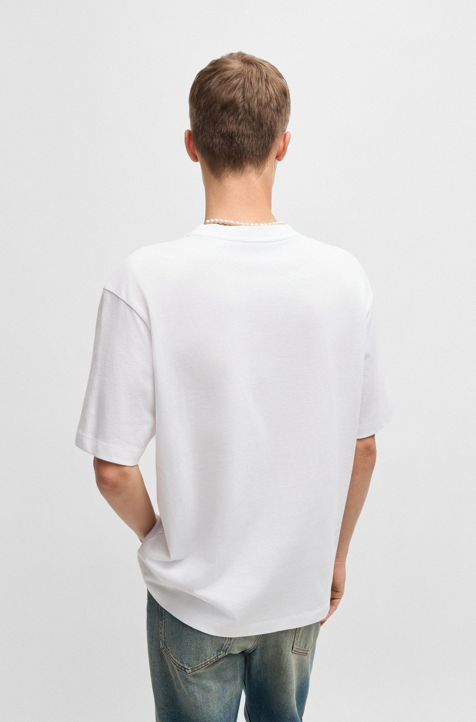 Una camiseta distintiva de algodón de peso medio, de HUGO Menswear. Confeccionada con un corte regular, esta prenda está adornada con un parche con el logotipo de Happy HUGO.