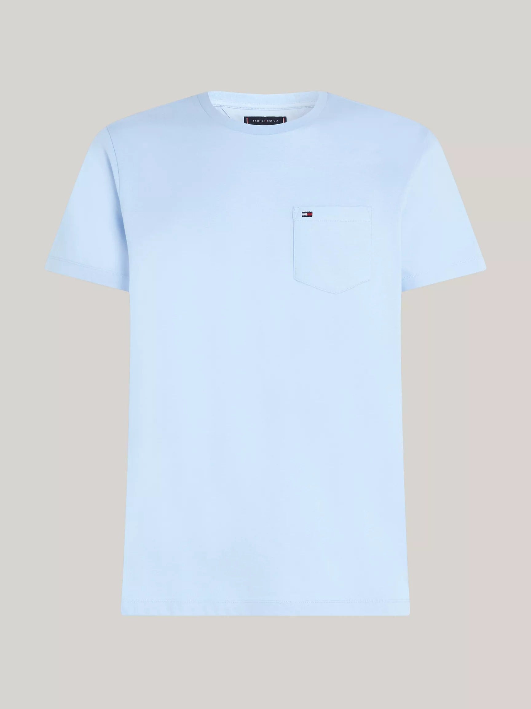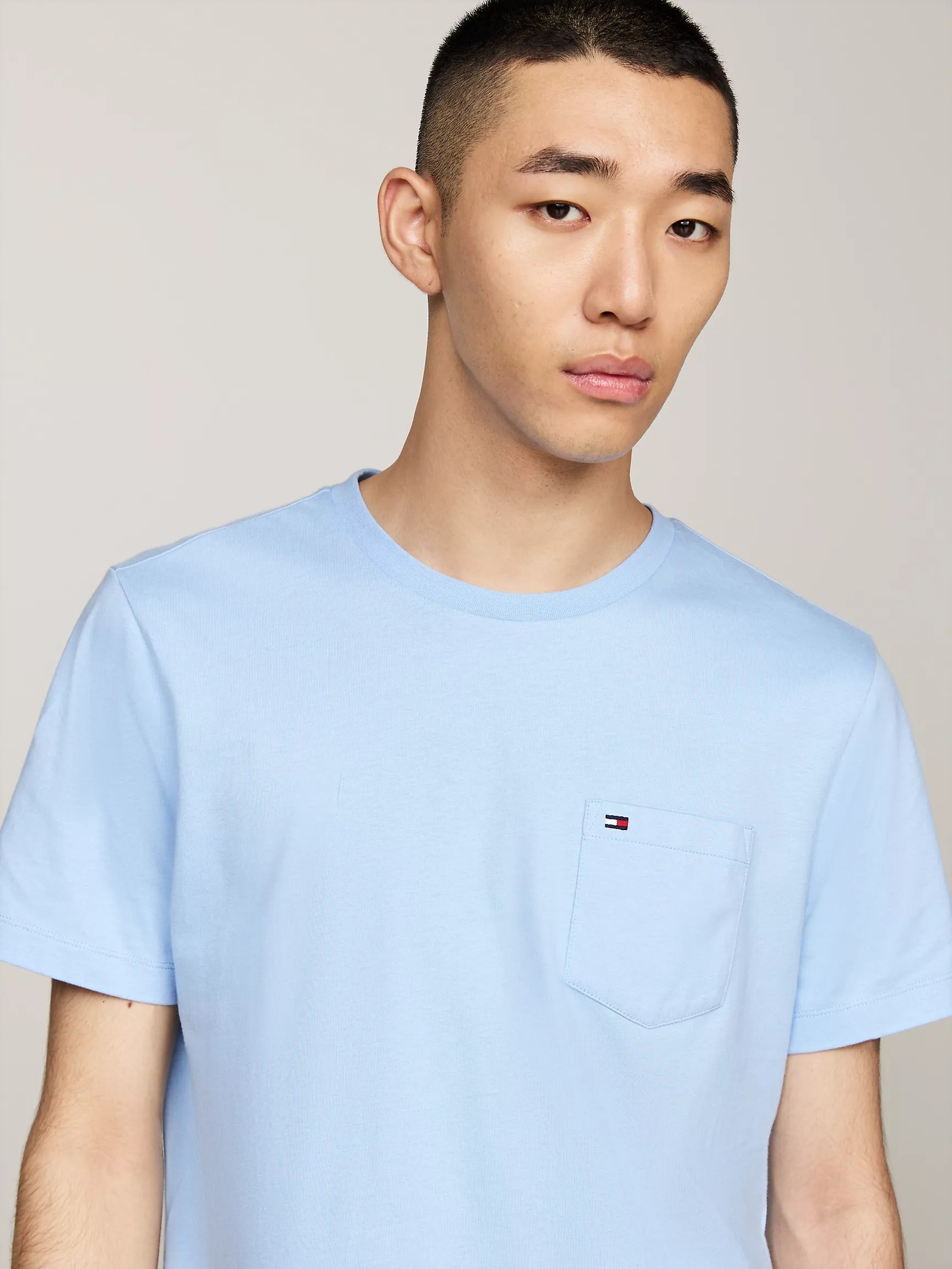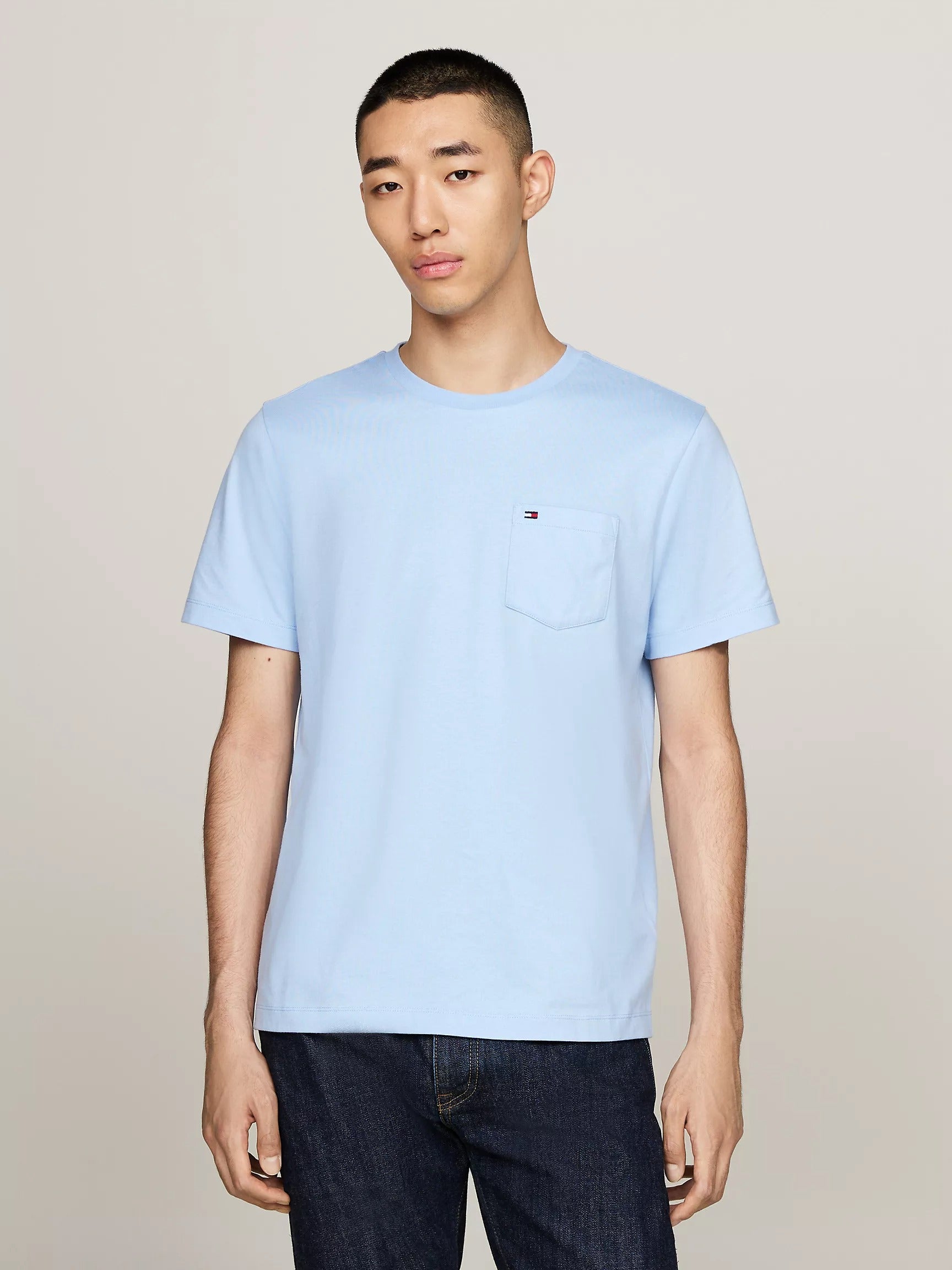 Camiseta Tommy Hilfiger para hombre. Esta clásica camiseta de algodón ofrece un estilo relajado e informal, desde su corte impecable hasta el bolsillo en el pecho y su ajuste cómodo.