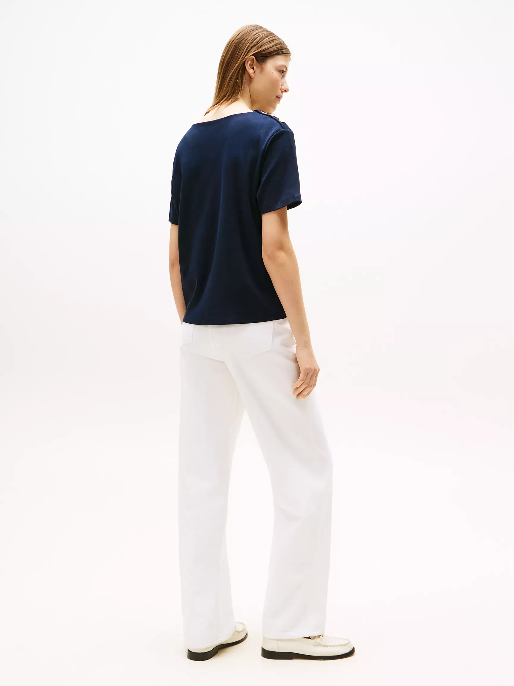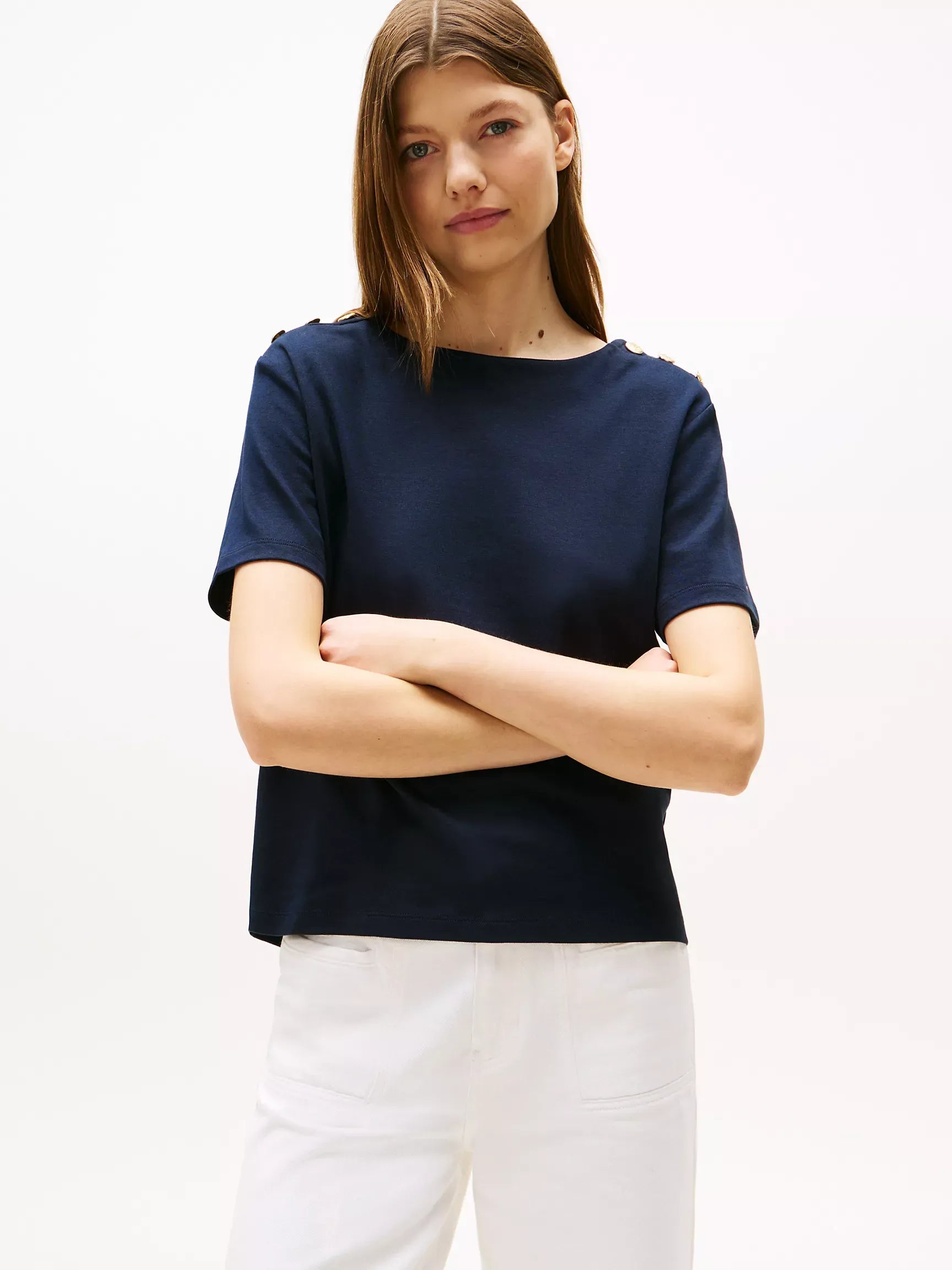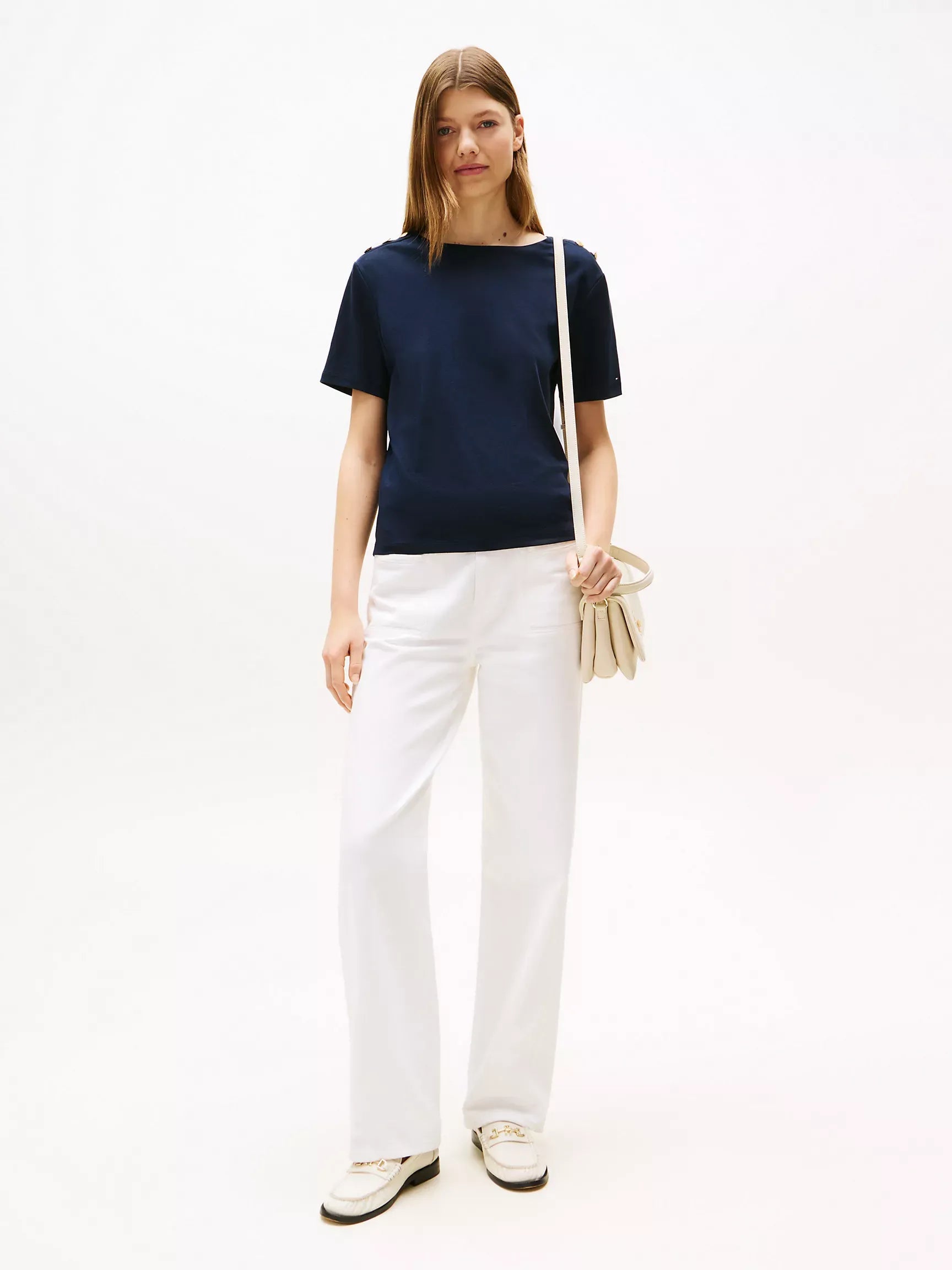 Camiseta de mujer Tommy Hilfiger. Nuestra camiseta está confeccionada en punto interlock de algodón. Su tejido denso de doble cara es liso, resistente y, sobre todo, extremadamente suave.