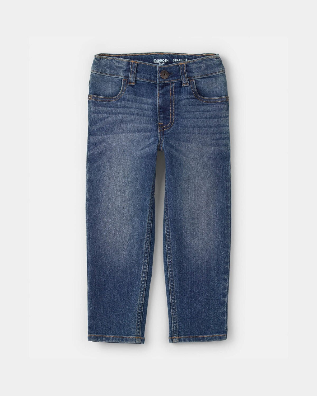 Vaqueros con lavado característico, pierna recta y relajada, ¡combinan con todo! Confeccionados en denim suave y elástico, con cintura ajustable para un estilo cómodo.
