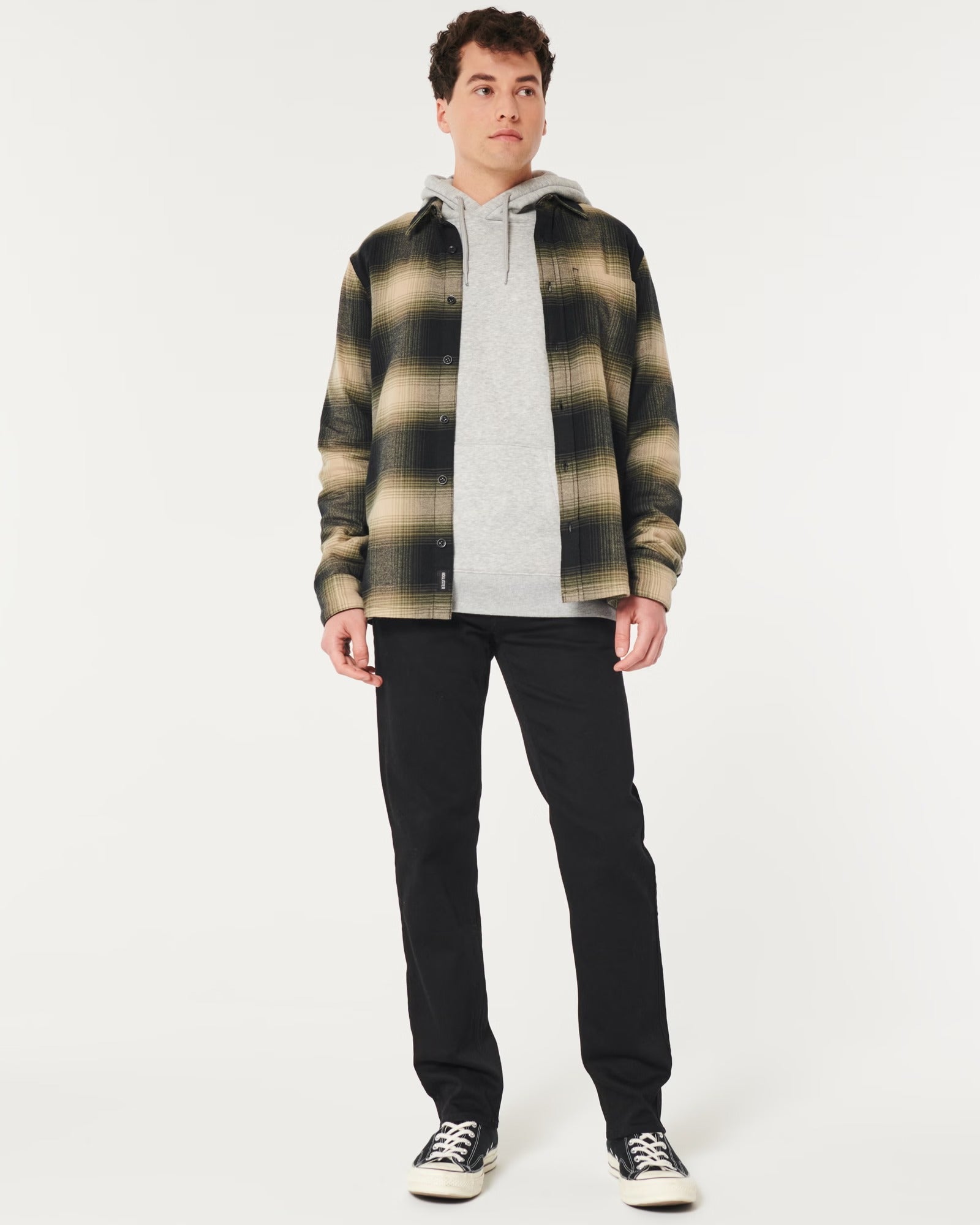 Diseñados con corte suelto en la cadera y los muslos con abertura de la pernera de 15.5", confeccionados con denim de lavado oscuro y con la elasticidad de Hollister Epic Flex, arrugas y sectores decolorados, bolsillo monedero derecho y bolsillo trasero con bordado icónico.