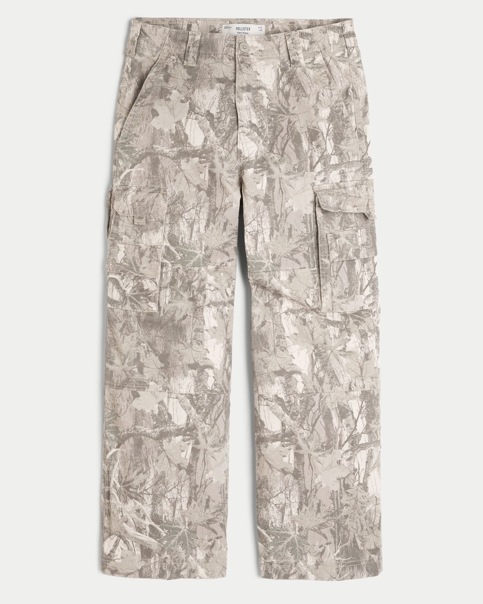 Cómodos pantalones de sarga elásticos, diseñados con una pernera súper holgada y bolsillos cargo laterales. Estampado camuflado en toda la prenda. Elástico. Artículo importado.