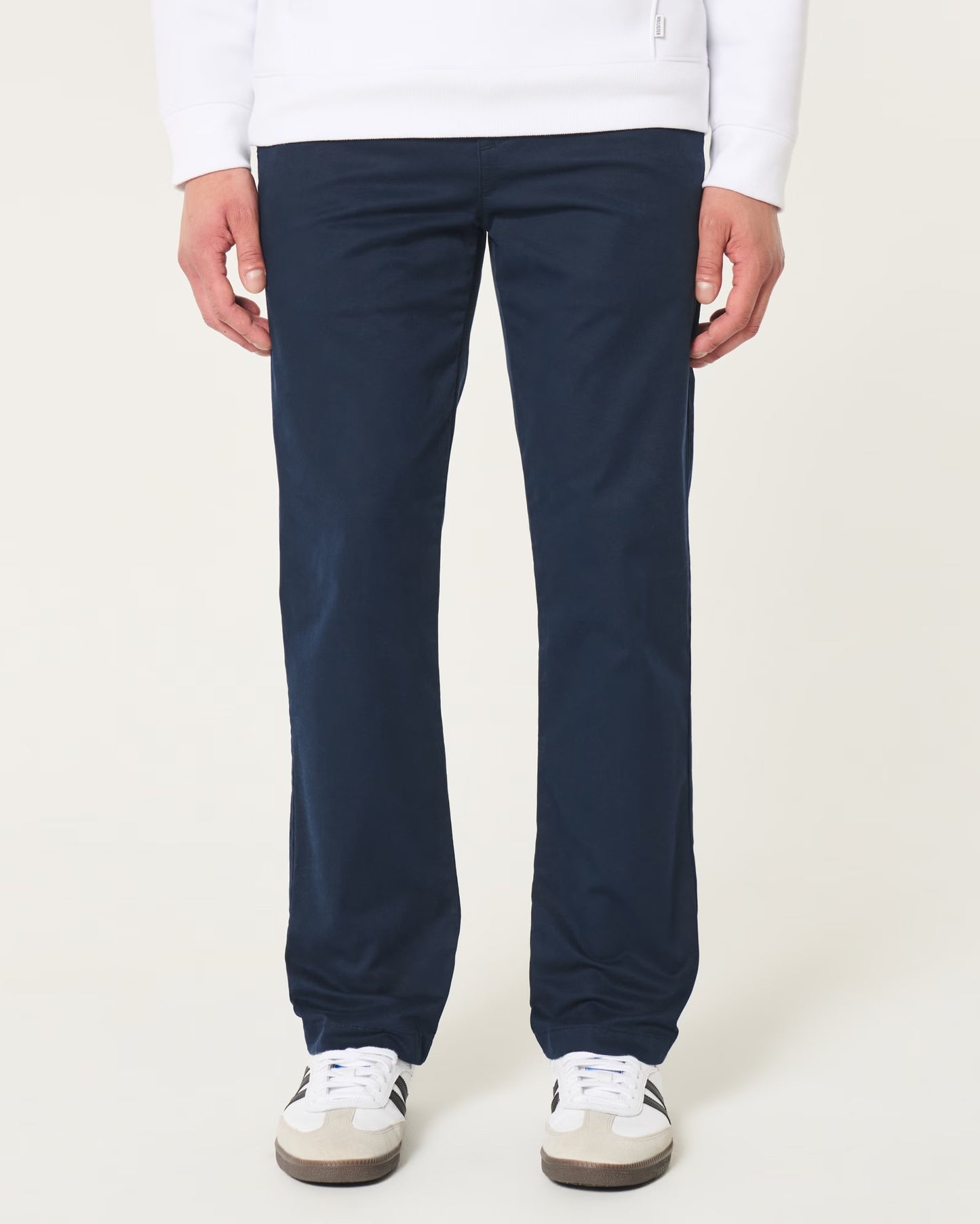 Pantalón chino ultracómodo de sarga con elástico, diseñado con una pernera de corte suelto recto. Bolsillos, bolsillo derecho con cremallera. Artículo importado.
