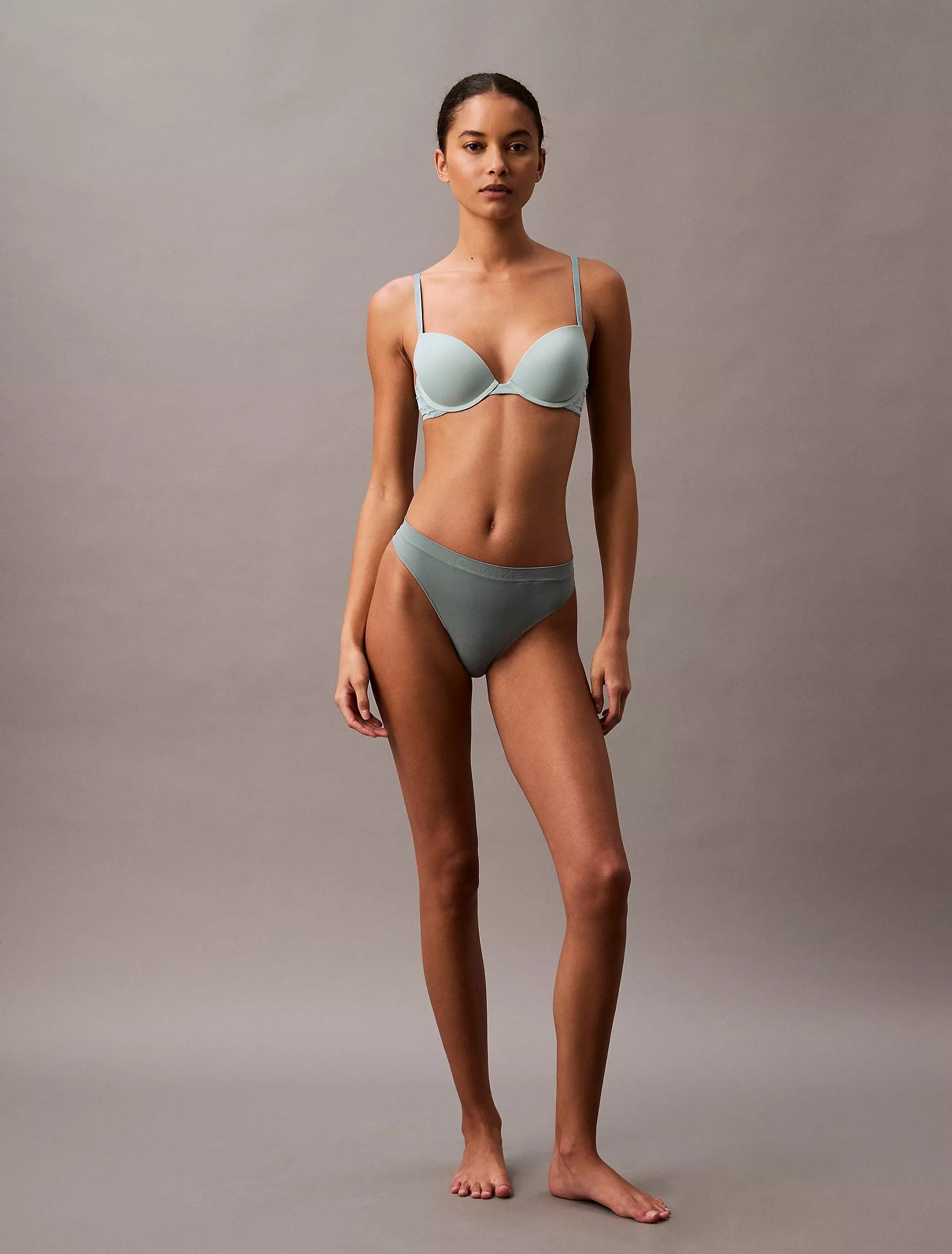 Suavidad sin costuras diseñada para adaptarse a tu figura. Combinada con elasticidad para una comodidad duradera, esta tanga de tiro medio está confeccionada en punto reciclado de galga fina, con un logotipo bordado a tono que le da un toque sutil y característico.