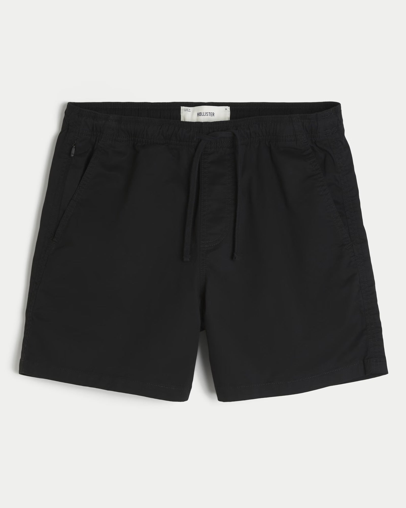 Cómodos shorts de sarga con cintura elástica con cordón y largo a medio muslo. Bolsillos, bolsillo derecho con cremallera. Artículo importado.