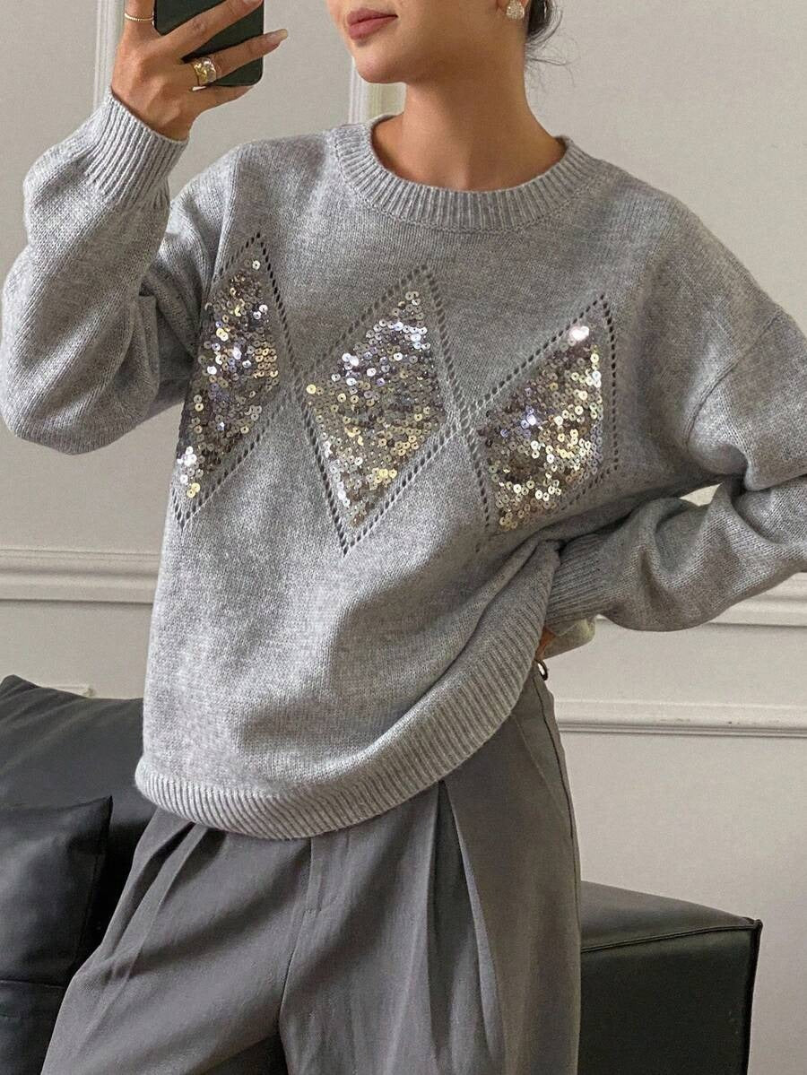 Suéter holgado de cuello redondo con adornos de lentejuelas