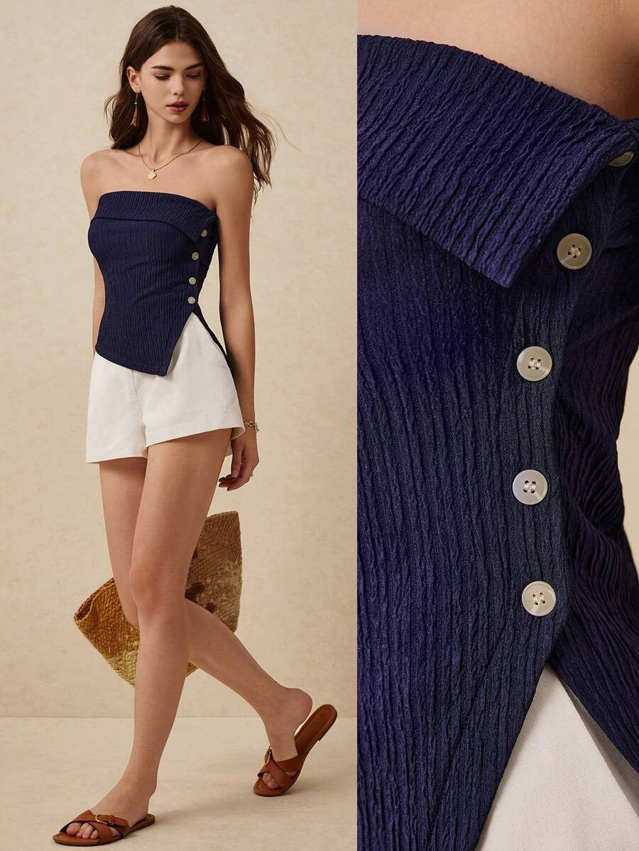 Top asimétrico con botones laterales