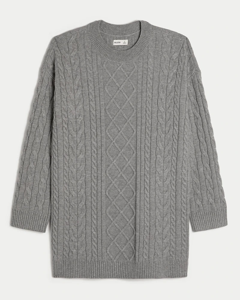 Vestido estilo suéter confeccionado con una tela supersuave y cómoda con patrones de trenzado de punto clásicos. Cuello redondo, mangas largas, bordes ribeteados. Artículo importado.